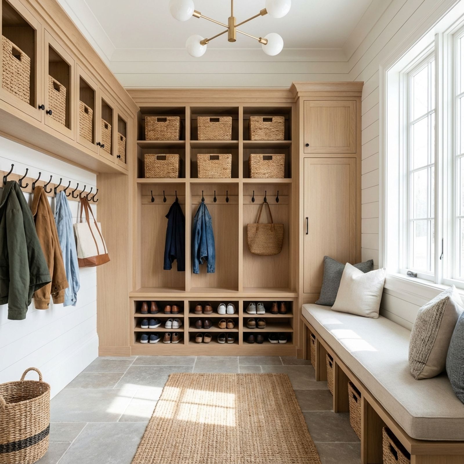 - Manage moisture: Use boot trays or mats with drainage during wet seasons. Ensure proper ventilation in mudrooms to dry wet items and prevent mold. Consider small dehumidifier for poorly ventilated spaces.
